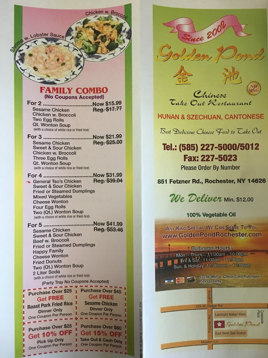 Golden Pond Chinese restaurant , Take out Food & Delivery Menu